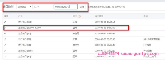 看到上面這些例子,相信你已經知道怎么放行端口號了,對的放行單個端口號直接輸入1到65000的數字就行,如果是放行一段端口號用2000:3000這樣的格式。